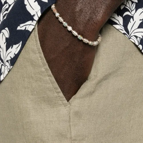 хаки, завязка на шнурке, шлевки для ремня, застежка на пуговицу, передние карманы, задние карманы