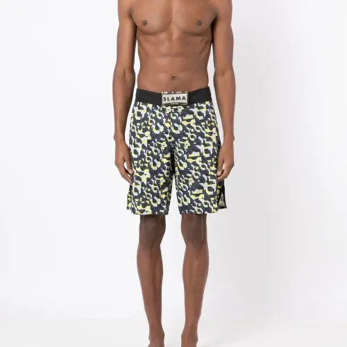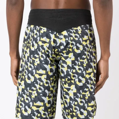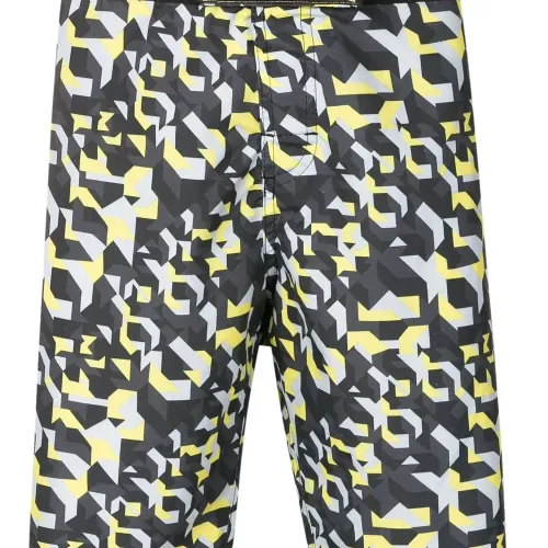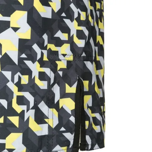 Черный, желтый, геометричный узор, пояс с логотипом, эластичный пояс, средняя посадка и длина выше колена.