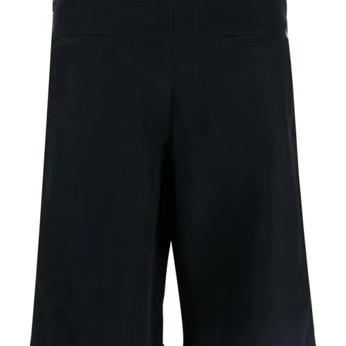 Темно-синий, смесь хлопка и льна, длина по колено, петли для ремня, застежка на молнии и пуговице спереди и два кармана с листочкой сзади. Этот товар как минимум на 50% состоит из материалов, которые признаны более безопасными для окружающей среды, и/или произведены с использованием методов, которые помогают сократить потребление воды и химических веществ. Узнать больше о том, какие товары получают отметку «Ответственный выбор», можно из материала «Как мы оцениваем экологичность и этичность».