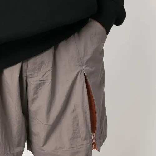 Серый металлик, оранжевый, переработанный полиэстер, дизайн колор-блок, отделка с декоративной молнией, эластичный пояс и два прорезных кармана по бокам.
