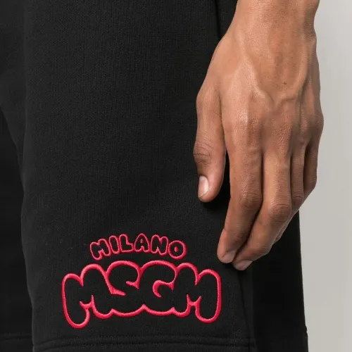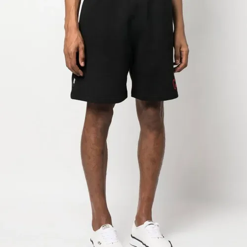 Черный, хлопок, вышитый логотип спереди, эластичный пояс, два прорезных кармана по бокам, накладной карман сзади и длина по колено.