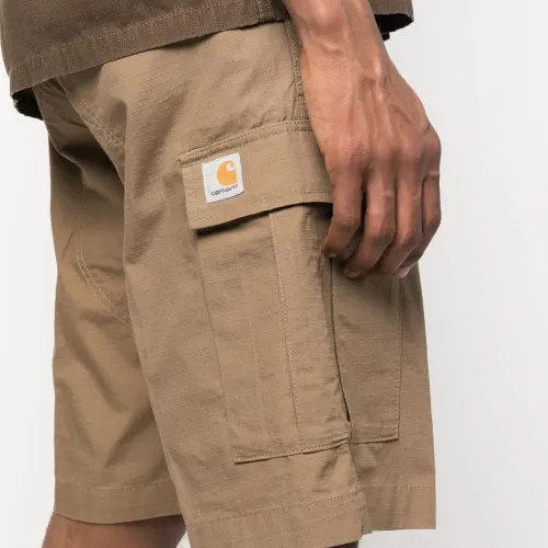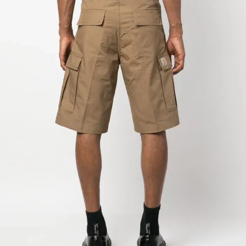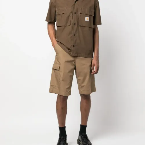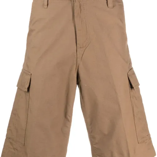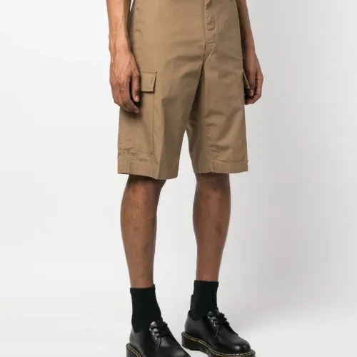 Расцветка Light Brown, хлопок, нашивка с логотипом сбоку, петли для ремня, застежка на молнии и пуговице спереди, два прорезных кармана по бокам, два накладных кармана по бокам, два кармана с клапанами сзади и длина по колено.