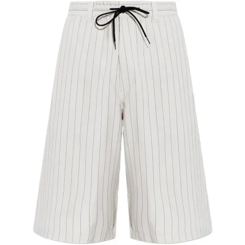 Off-White, узор «в тонкую полоску», завязки, задние накладные карманы, эластичный пояс