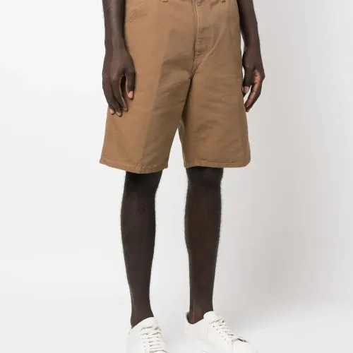 Бежево-коричневый, органический хлопок, нашивка с логотипом сзади, петли для ремня, застежка на молнии и пуговице спереди, накладной карман сбоку, два накладных кармана сзади и длина по колено. Узнать больше о том, какие товары получают отметку «Ответственный выбор», можно из материала «Как мы оцениваем экологичность и этичность».
