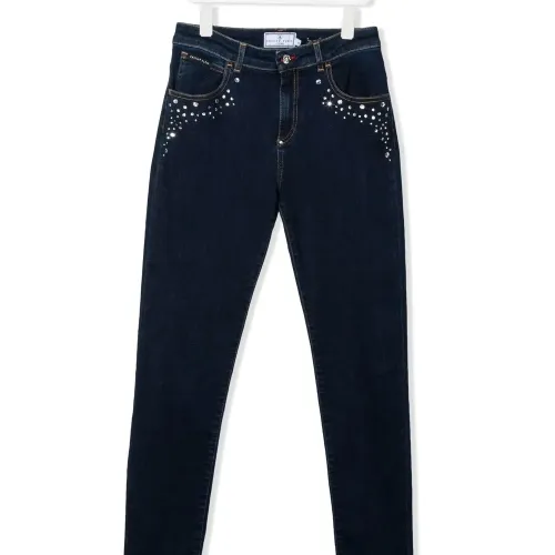 Джинсы с кристаллами и логотипом