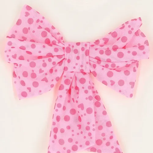 белый розовый бант длинные рукава круглый вырез в горошек