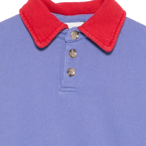 фиолетовый контрастный воротник застежка на пуговицы длинные рукава рукава в рубчик вышитый логотип