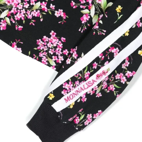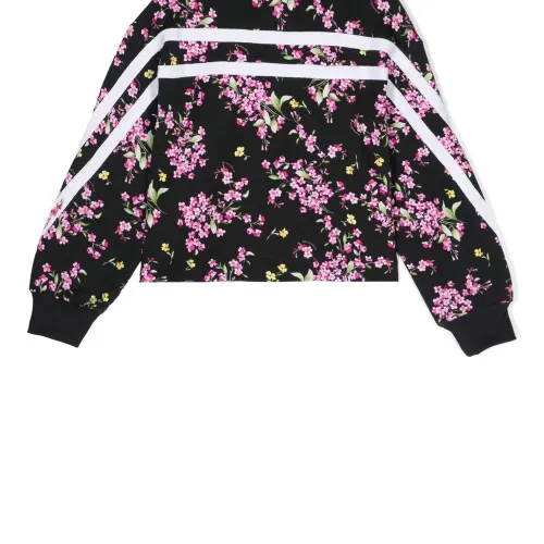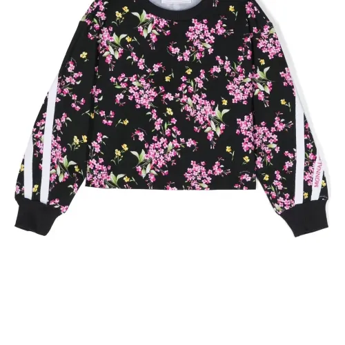Черный/разноцветный, эластичный хлопок, сплошной цветочный принт, края в полоску, круглый вырез, длинные рукава, рукава с узкими манжетами и прямой подол.