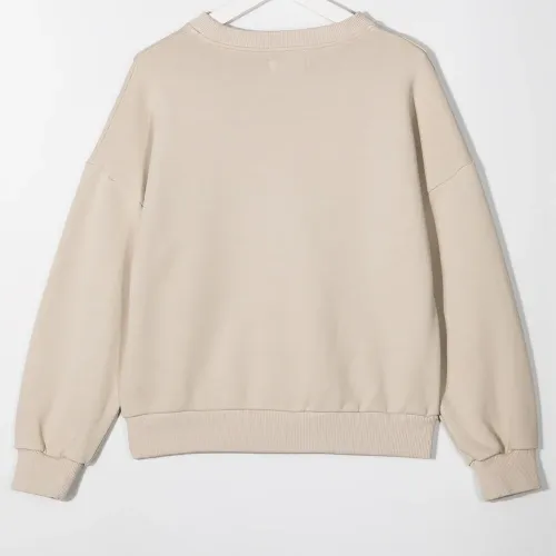Флисовый материал, края в рубчик, круглый вырез, длинные рукава и рукава с узкими манжетами.