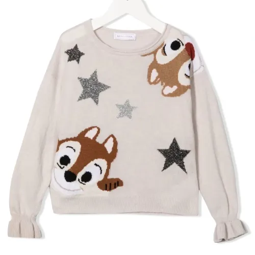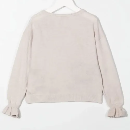 Бежевый, разноцветный, тонкая вязка, вышивка, вышитые звезды, круглый вырез, длинные рукава и подол в рубчик.
