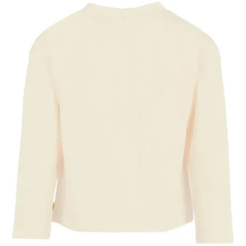 слоново-косточный (айвори) лонгслив с принтом единорога, украшениями из пайеток, графическим дизайном и круглым вырезом