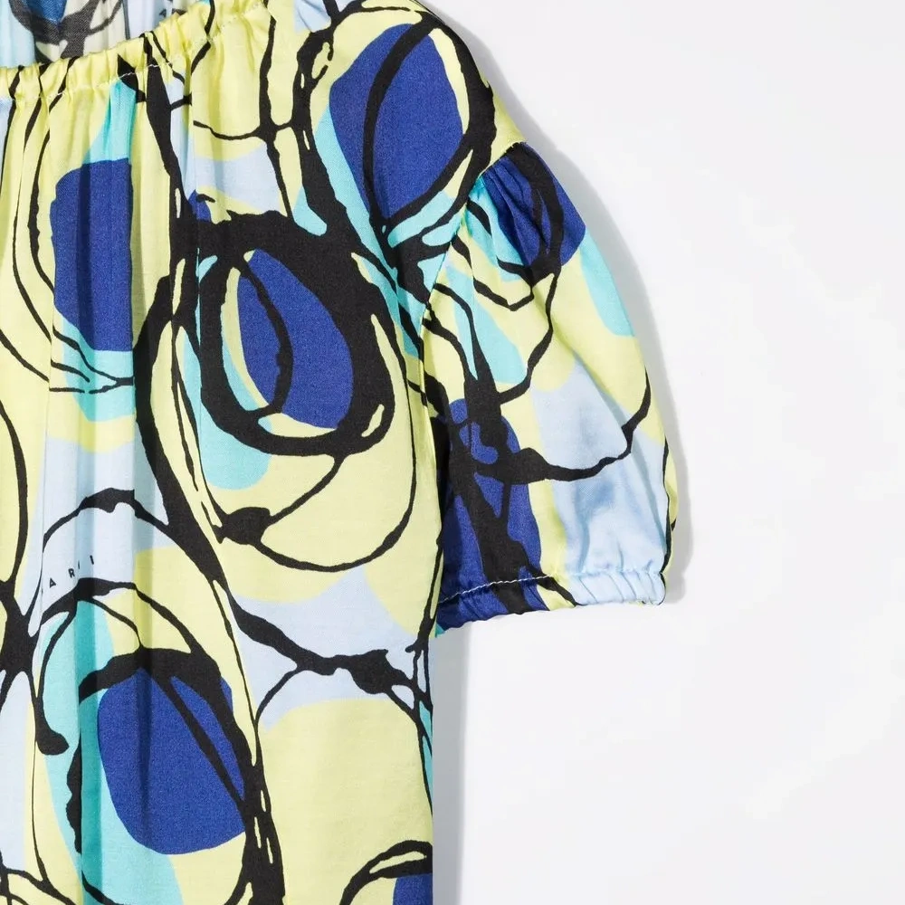 Стиль колор-блок, сплошной графичный принт, круглый вырез и короткие рукава.