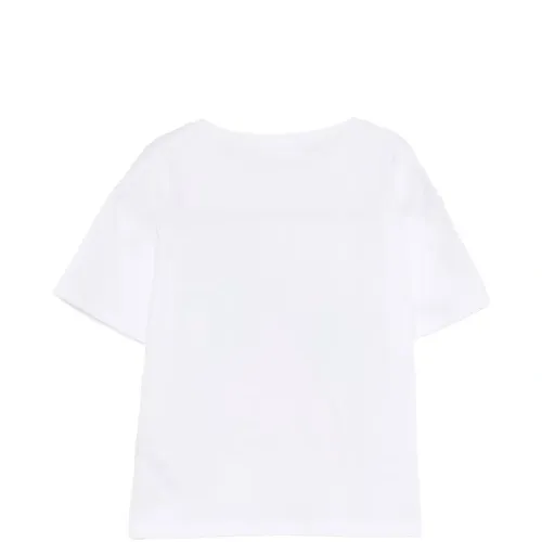 белая футболка с графическим принтом, круглым вырезом и короткими рукавами