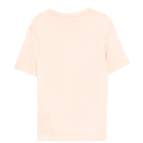 розовая футболка с логотипом, круглым вырезом, короткими рукавами и прямым подолом