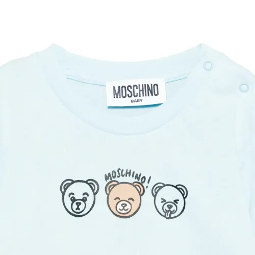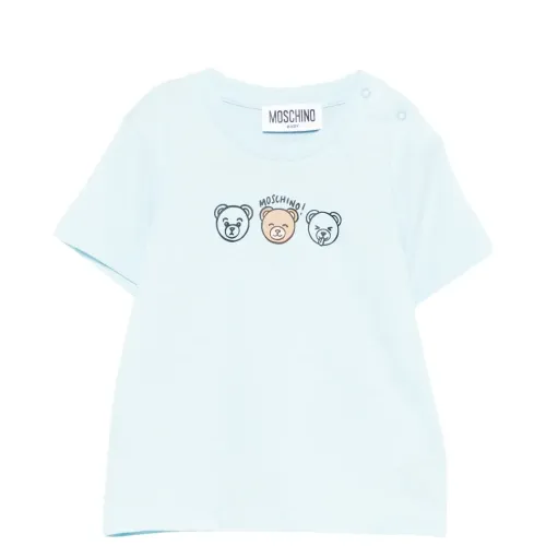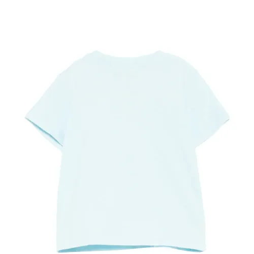 небесно-голубая футболка с графическим принтом, круглым вырезом, короткими рукавами и застежкой на кнопки