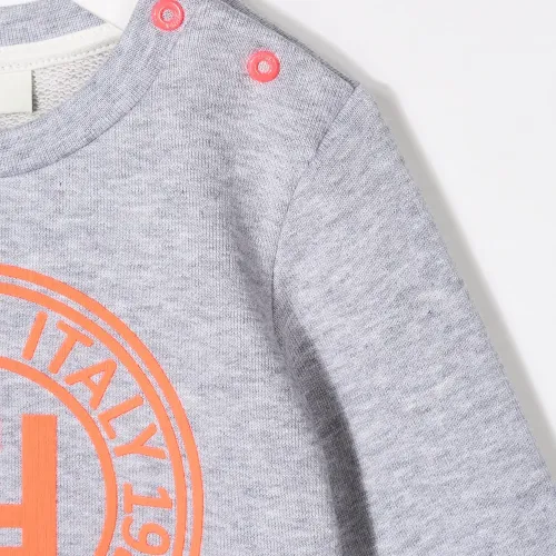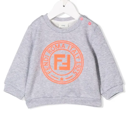 Толстовка с контрастным логотипом от Fendi Kids. Круглый вырез, пуговичные застежки на плечах, длинные рукава и подол и манжеты в рубчик. Цвет: серый.
