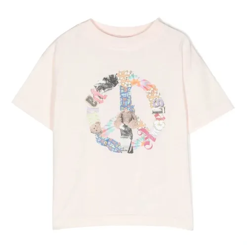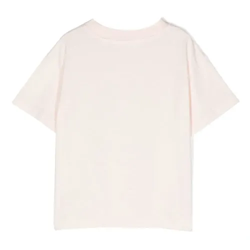 Светло-розовый, разноцветный, органический хлопок, графичный принт спереди, круглый вырез, короткие рукава и прямой подол. Ответственный выбор: