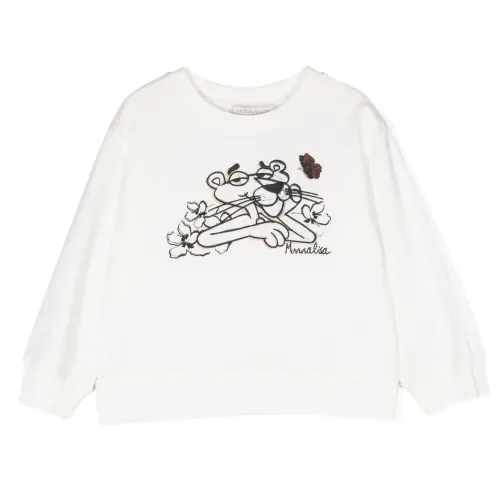 Белый, эластичный хлопок, вышитый узор, края в рубчик, длинные рукава и прямой подол.