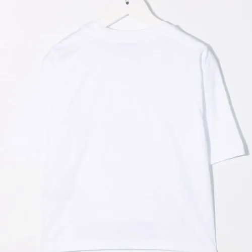 Логотип из пайеток, круглый вырез, короткие рукава и прямой подол. Цвет: белый.