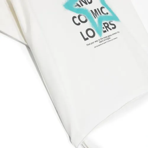 Кремовый, стрейчевый органический хлопок, принт с надписью спереди, круглый вырез, короткие рукава, завязки по бокам и необработанный подол. Узнать больше о том, какие товары получают отметку «Ответственный выбор», можно из материала «Как мы оцениваем экологичность и этичность».