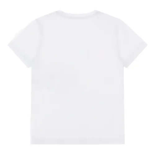 белая футболка с графичным принтом, круглым вырезом и короткими рукавами