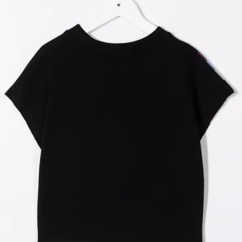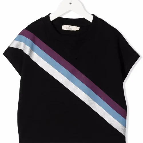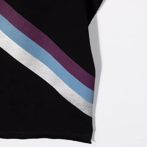 Флисовый материал, принт в диагональную полоску, круглый вырез, короткие рукава и укороченная длина. Цвет: черный. .