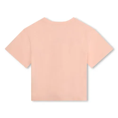 Персиково-розовый, органический хлопок, вышитый логотип, узор Boke Flower, круглый вырез, короткие рукава и прямой подол. Узнать больше о том, какие товары получают отметку «Ответственный выбор», можно из материала «Как мы оцениваем экологичность и этичность».