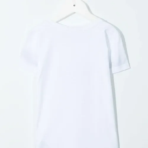 Ткань джерси, логотип спереди, круглый вырез, короткие рукава и прямой подол.