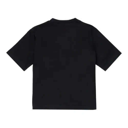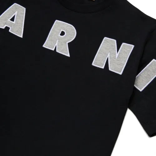 черная футболка с логотипом, круглый вырез, короткие рукава