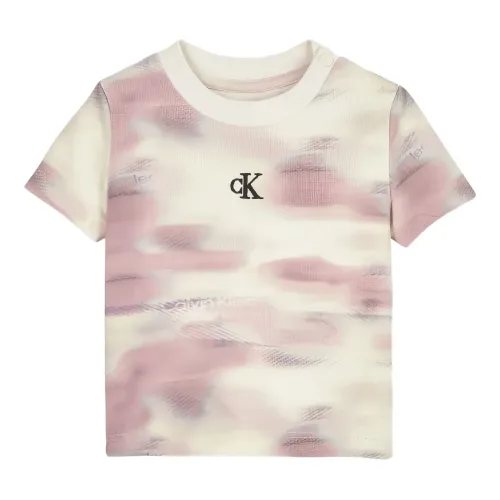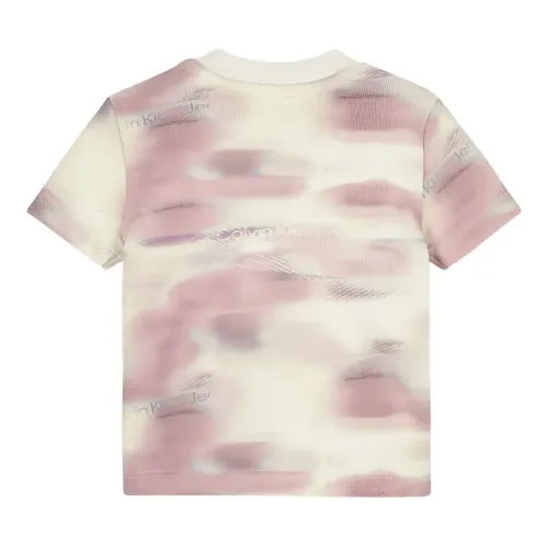 кремово-белая футболка с эффектом тай-дай, короткими рукавами, круглым вырезом и логотипом
