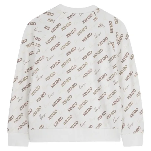 оф-вайт свитшот с принтом логотипа по всей поверхности, круглый вырез, длинные рукава, ребристые манжеты, ребристый низ