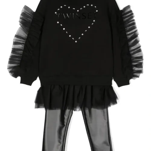 Комплект из толстовки и легинсов с оборками и логотипом