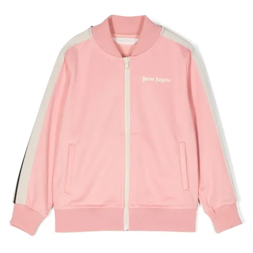 Розовый, кремовый, хлопок, принт с логотипом на груди, полоска сбоку, бейсбольный воротник, застежка на молнии спереди, два передних кармана с листочкой, длинные рукава, манжеты в рубчик и подол в рубчик.