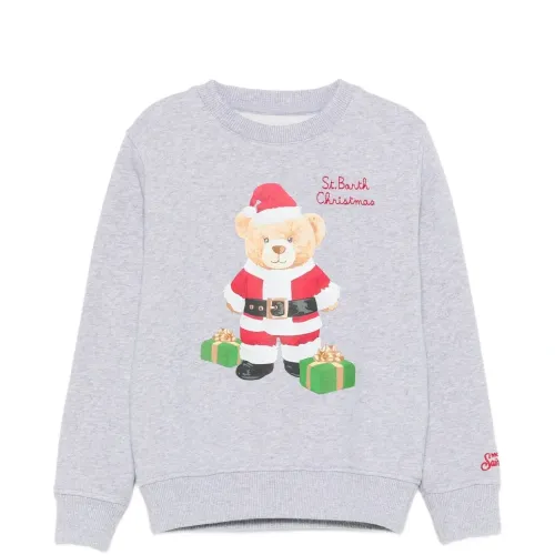 Серый свитер с круглым вырезом, ребристыми манжетами и принтом рождественского медведя