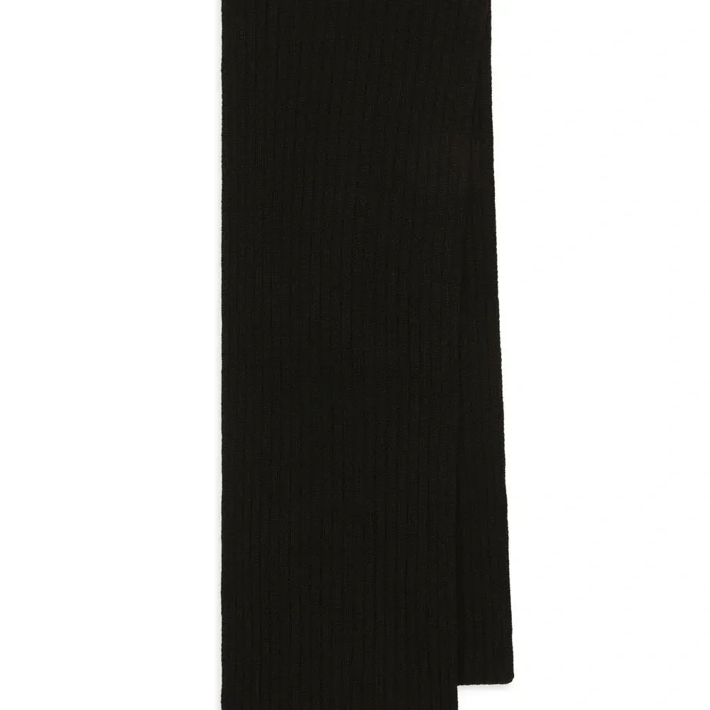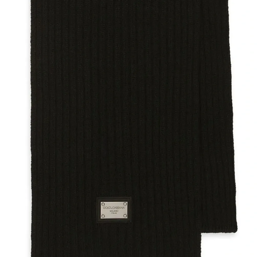 Черный, необработанная шерсть, серебристый металлический логотип, трикотажный материал и детали в рубчик.