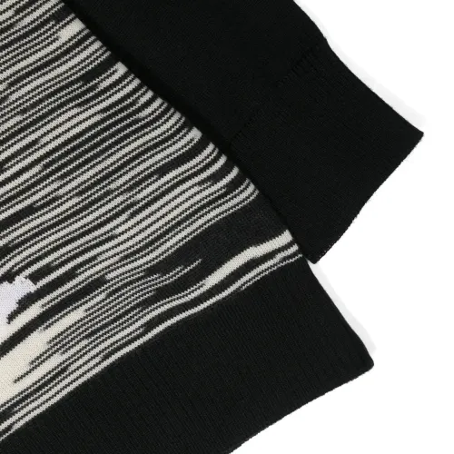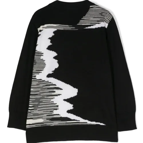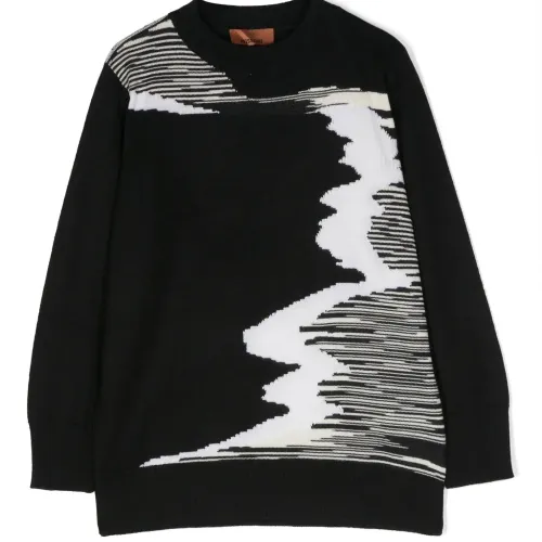 Черный/белый, шерсть, необработанная шерсть, вязка в технике интарсия, вязаные края в рубчик, сочетание двух оттенков, круглый вырез, длинные рукава и прямой подол. Эта модель, как и другие вещи Missoni, выполнена вручную, поэтому товар может незначительно отличаться от фотографий на сайте.