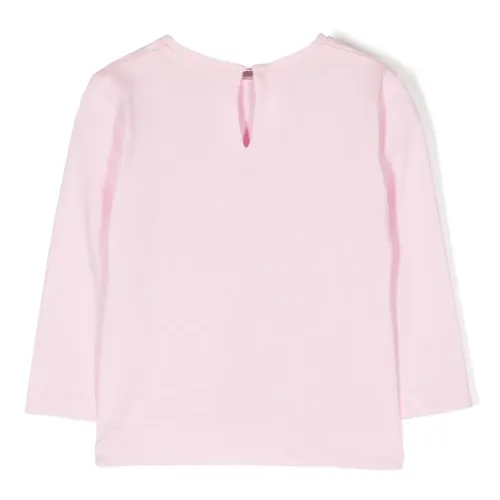 Расцветка Blush Pink, расцветка Cloud White, хлопок, графичный принт спереди, вырез сзади, круглый вырез, застежка на пуговицу сзади, длинные рукава и прямой подол.