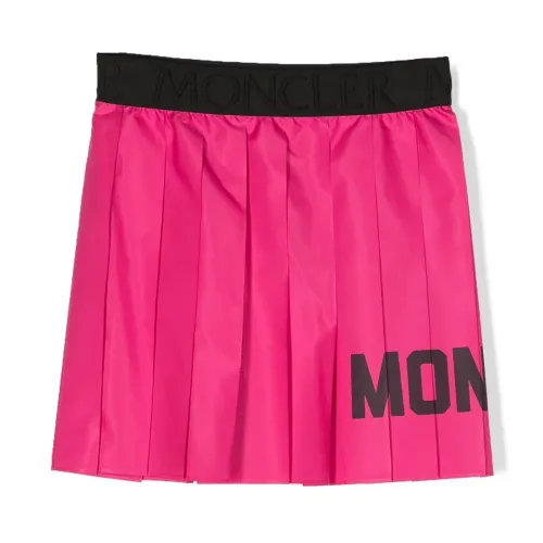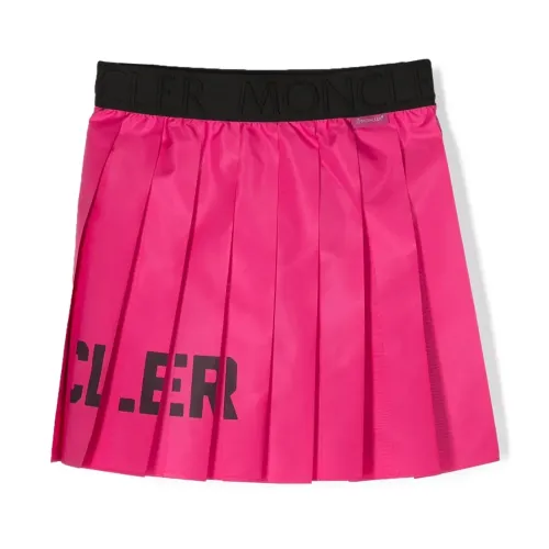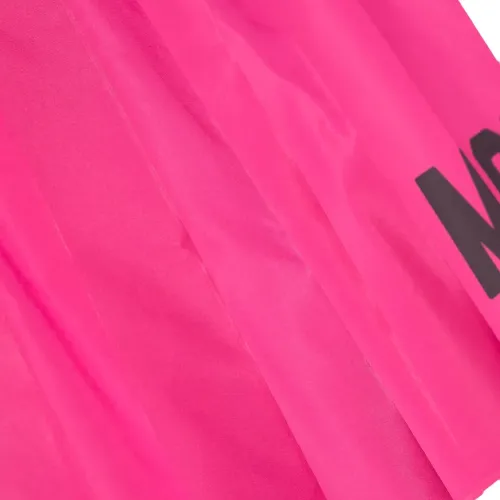 Фуксия, логотип сбоку, пояс с логотипом, эластичный пояс, плиссированная юбка и длина до бедер.