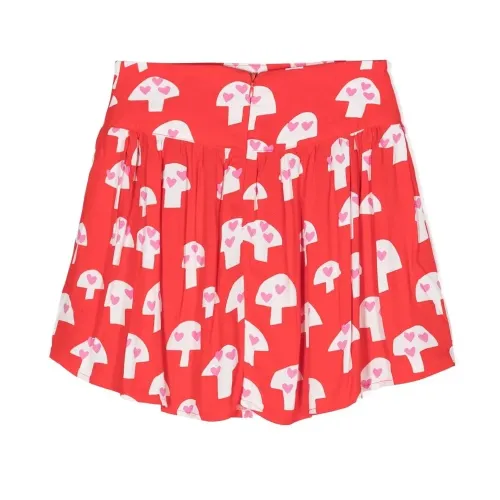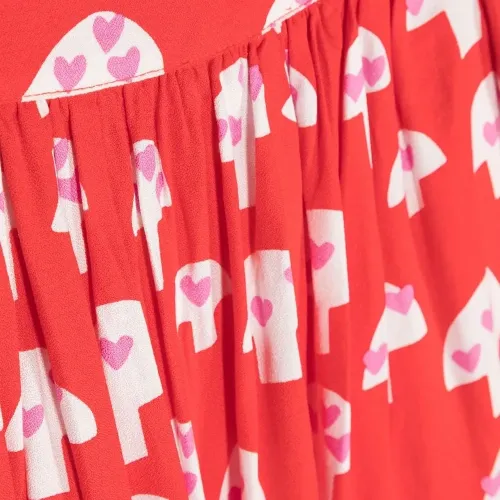 Красный, светло-розовый, белый, принт с изображением сердца, смешанный принт, застежка на молнии сзади и длина выше колена.