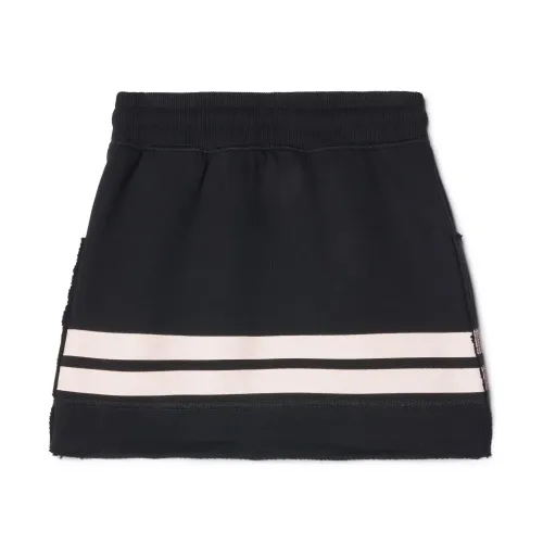 Черный, светло-розовый, хлопок, полоски, логотип спереди, А-образный силуэт, кулиска на талии, два вшитых кармана по бокам и необработанный подол.