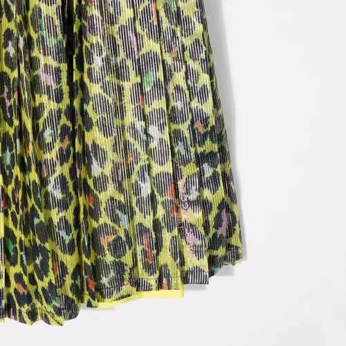 Сплошной леопардовый принт, плиссировка, кулиска на талии и длина миди.