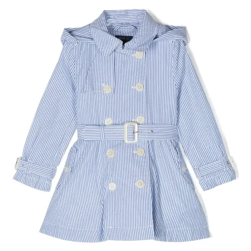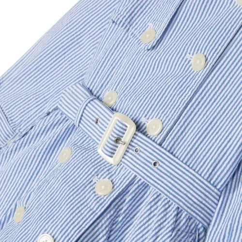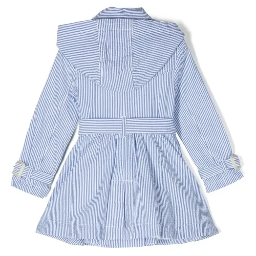 Синий/белый, хлопок, узор в вертикальную полоску, классический воротник, классический капюшон, застежка на пуговицах спереди, ремень на талии и длинные рукава.