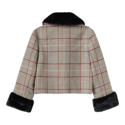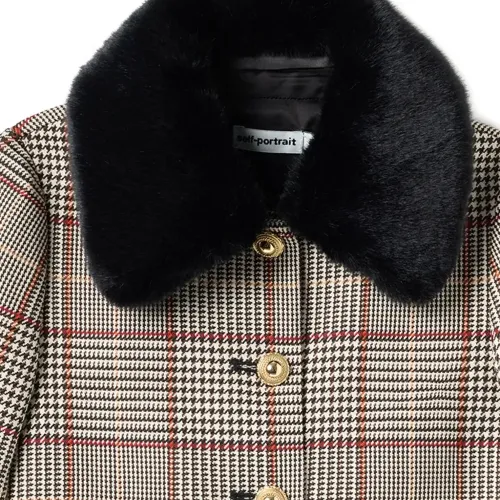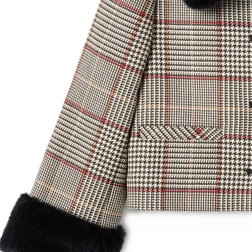 Шуба из искусственного меха в ломаную клетку