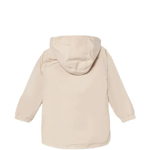 бежевый, цветочный принт на подкладке, капюшон, застежка на пуговицы, накладные карманы, эластичные манжеты