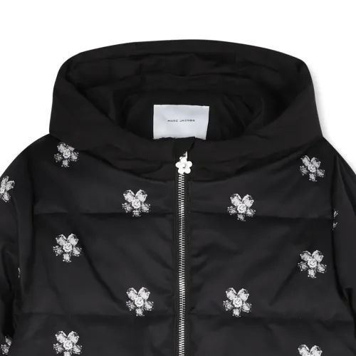 пуховик с цветочной вышивкой