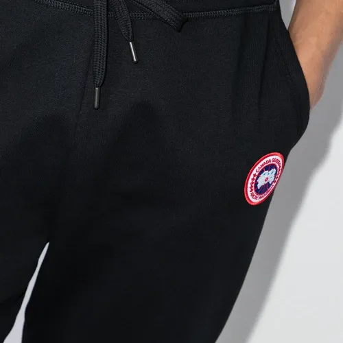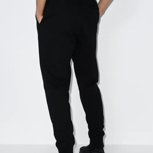 Нашивка с логотипом спереди, эластичные манжеты, эластичный пояс на шнурке, зауженный крой и два прорезных кармана по бокам. Цвет: черный.