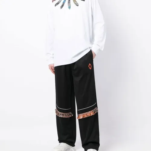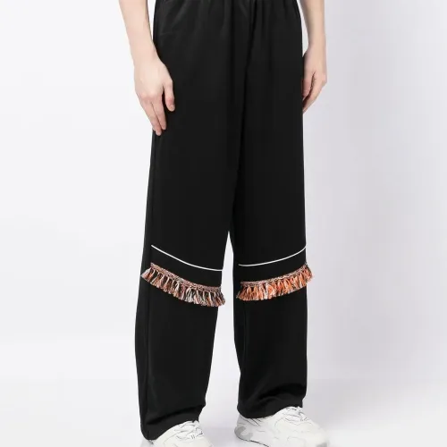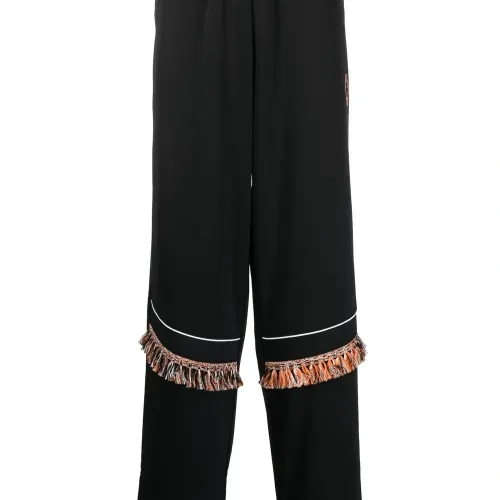 Черный, хлопок, эластичный пояс, прямой крой, бахрома, два вшитых кармана по бокам и задние карманы с листочкой.