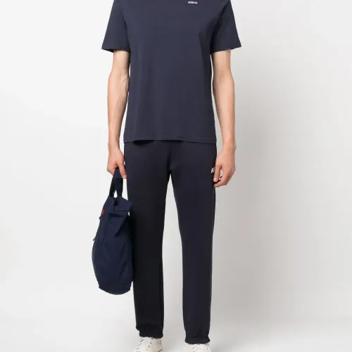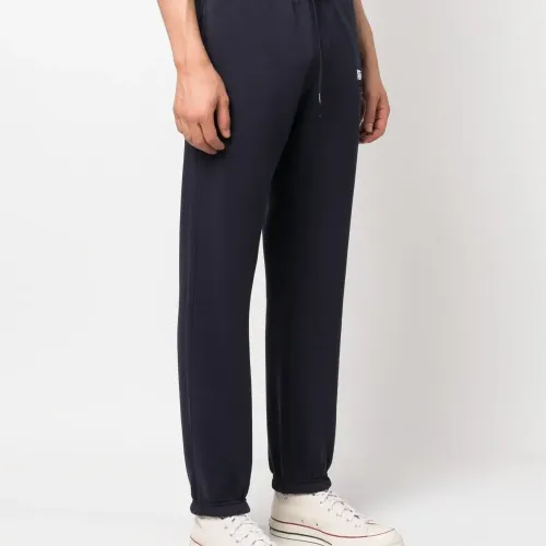 Темно-синий, белый, хлопок, логотип-аппликация, кулиска на талии, прямой крой, два прорезных кармана по бокам, накладной карман сзади, маленькая подвеска с логотипом и эластичный подол.
