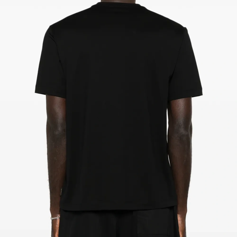 чёрная футболка с круглым вырезом, короткими рукавами и стандартным кроем