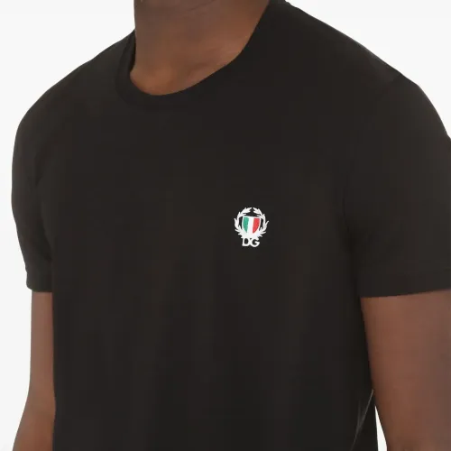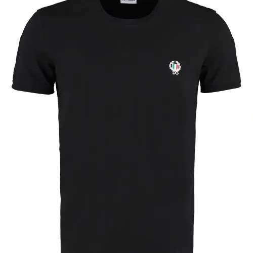 Футболка с логотипом от Dolce & Gabbana (Дольче энд Габбана). Круглый вырез под горло и короткие рукава. Цвет: черный.